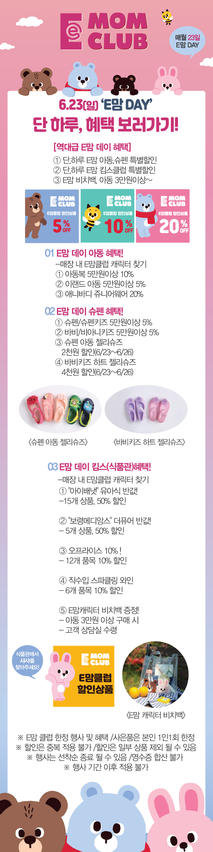 6.23(일) E맘 DAY 단 하루, 혜택 보러가기!