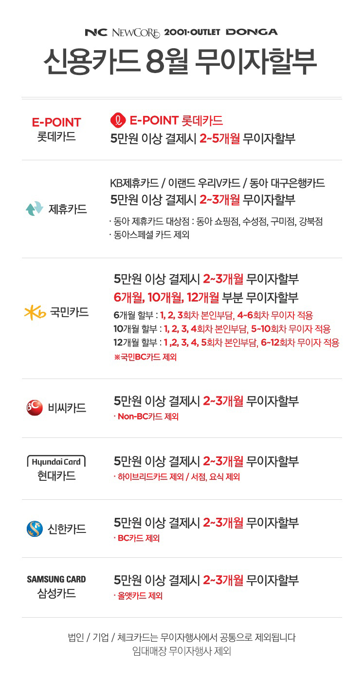 2023년 8월 신용카드 무이자 할부 안내