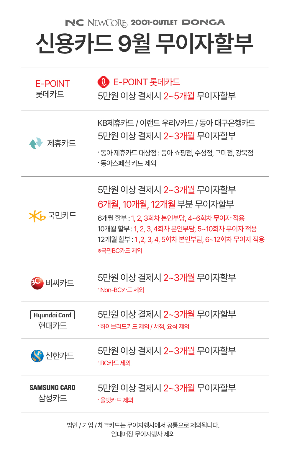 2023년 9월 신용카드 무이자 할부 안내