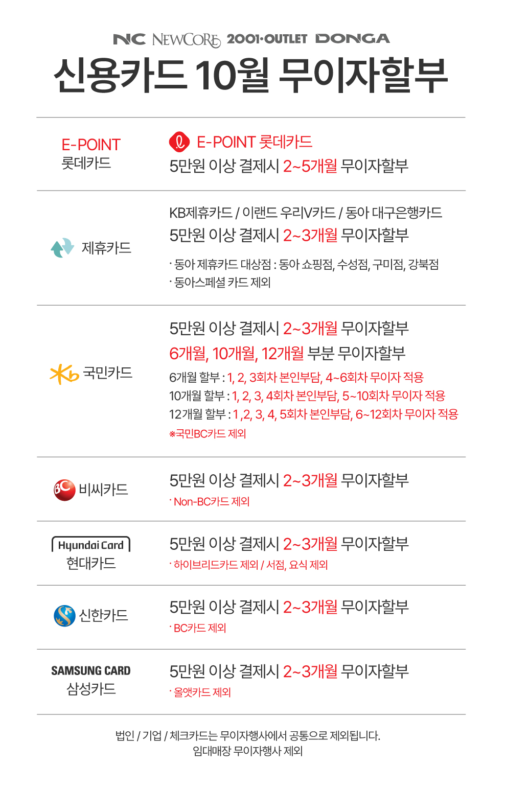 2023년 10월 신용카드 무이자 할부 안내
