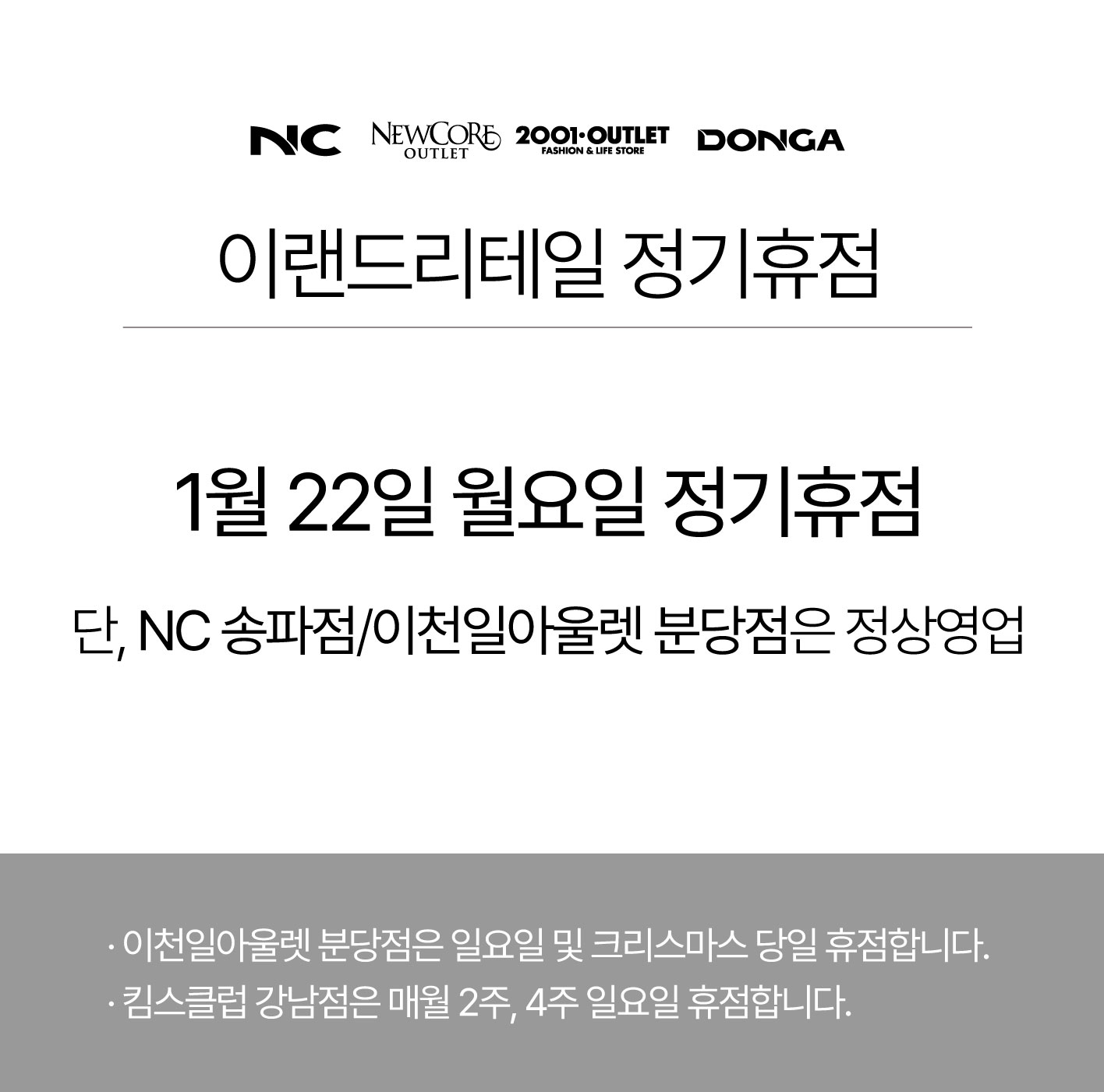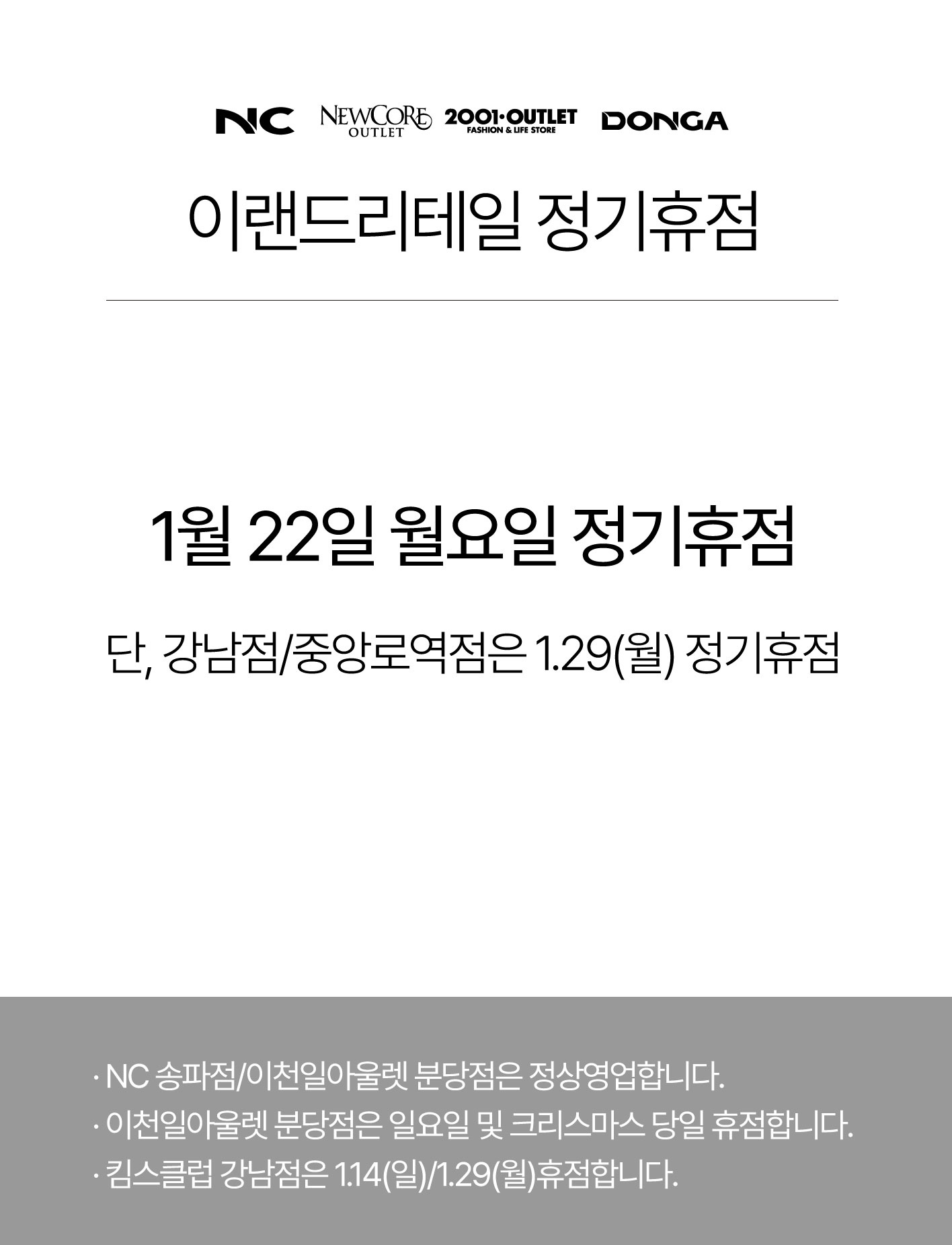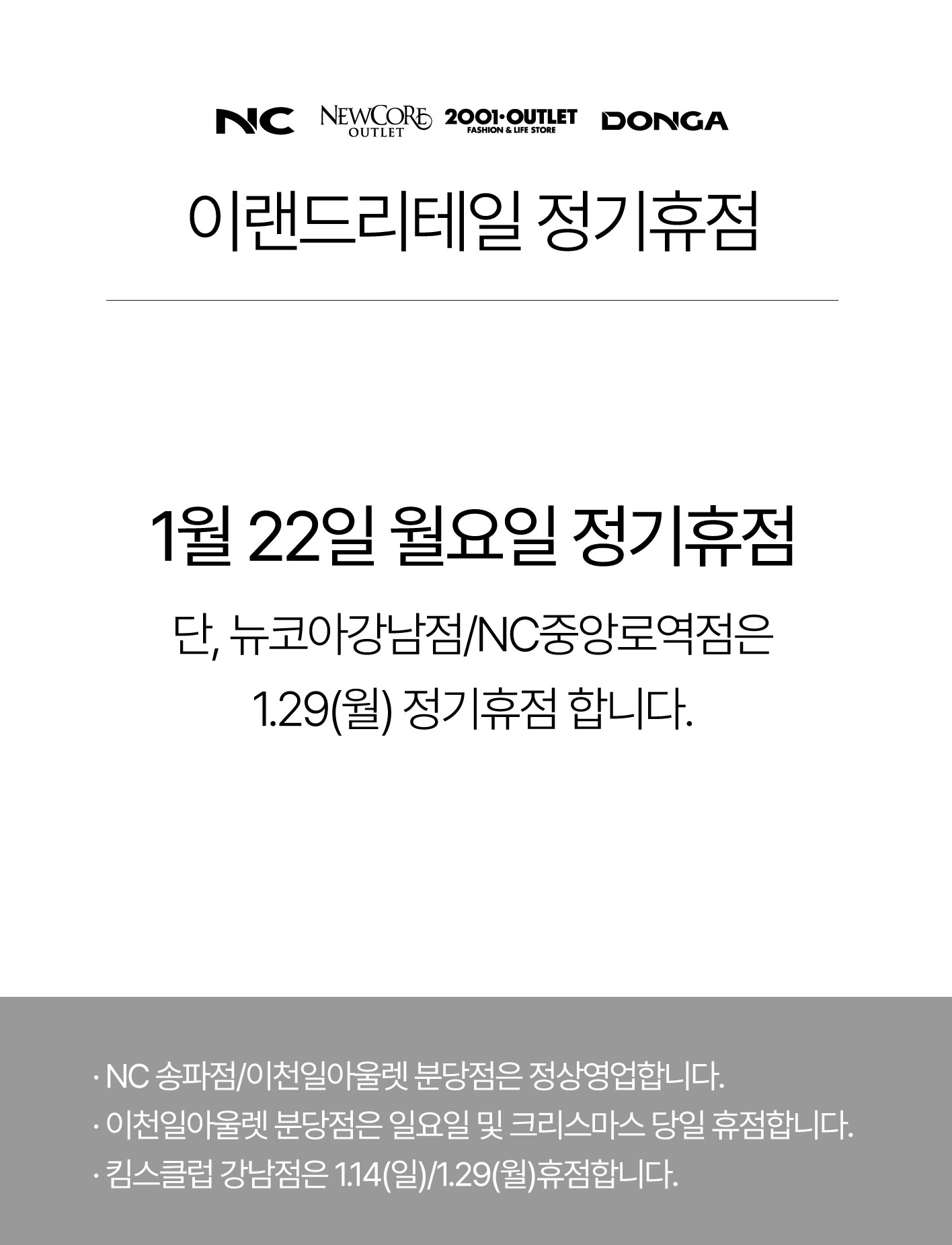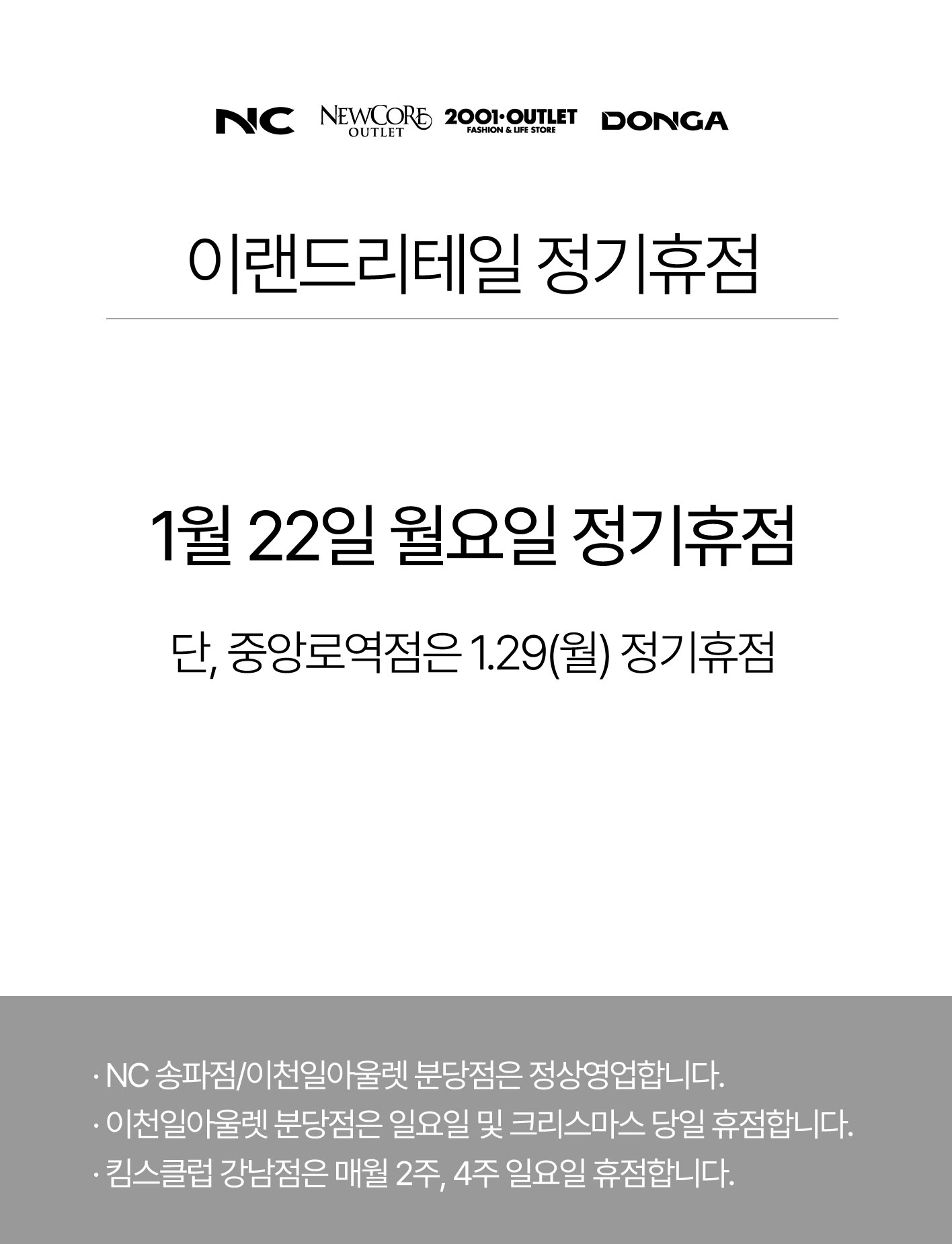 2024년 1월 정기휴점 안내