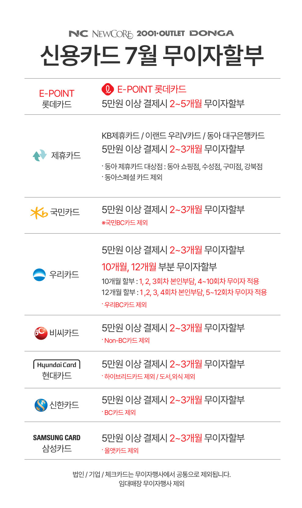 2024년 7월 신용카드 무이자 할부 안내