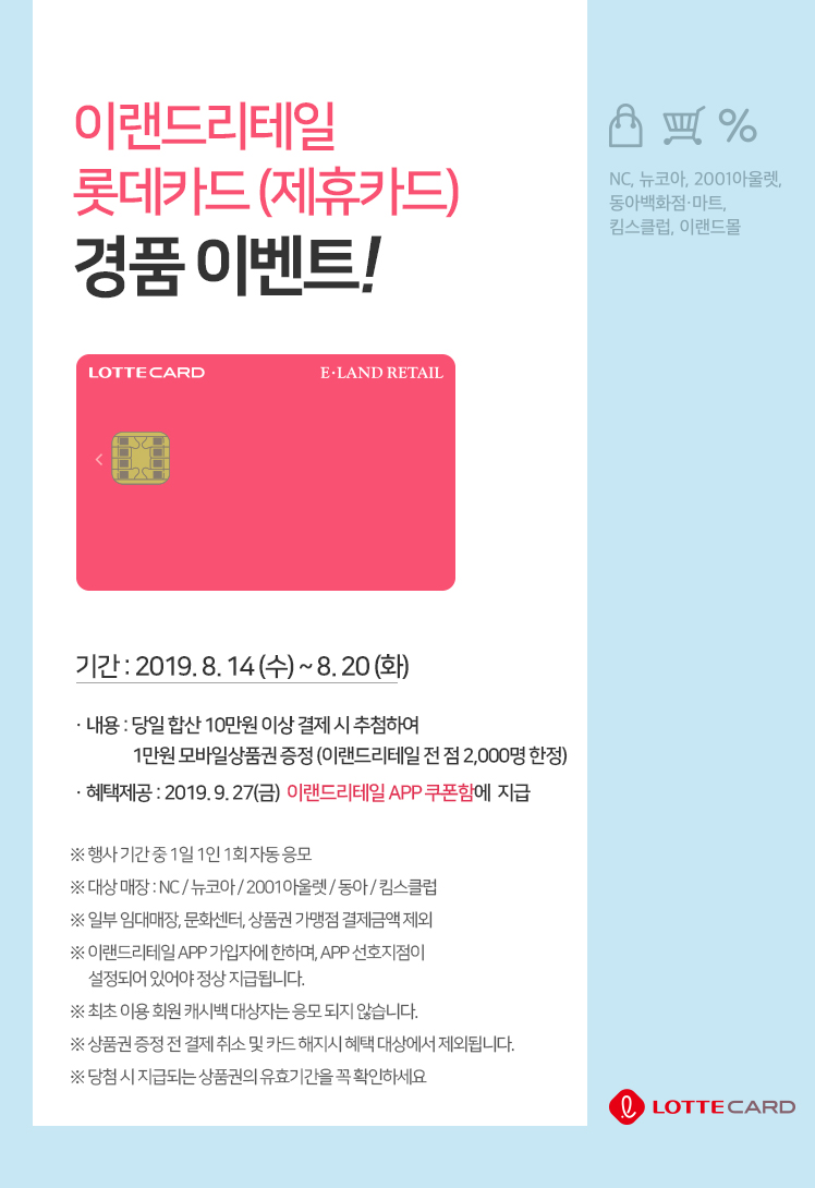 이랜드리테일 롯데카드(제휴카드) 경품 이벤트!