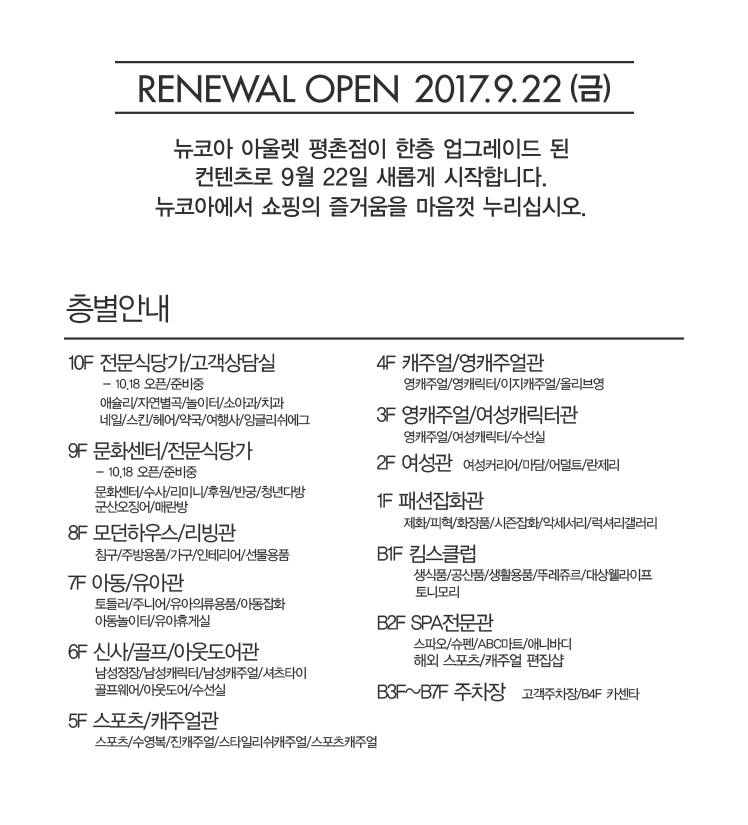 뉴코아 평촌점 9.22 리뉴얼 오픈
