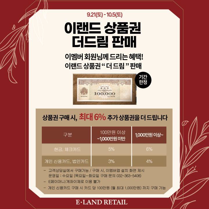 이랜드상품권 최대6% 더드림 이벤트