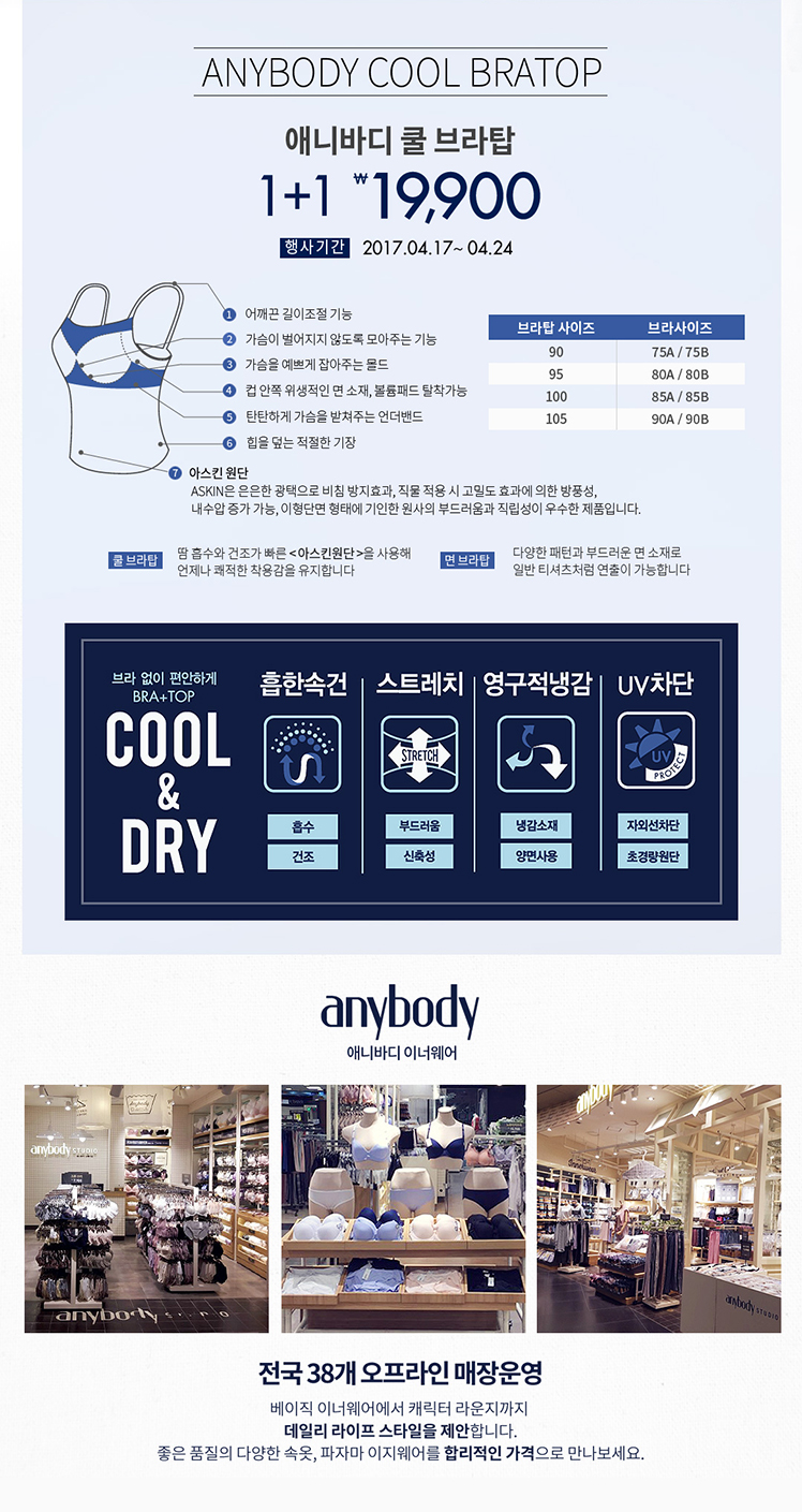 애니바디 쿨 브라탑 1+1 찬스!